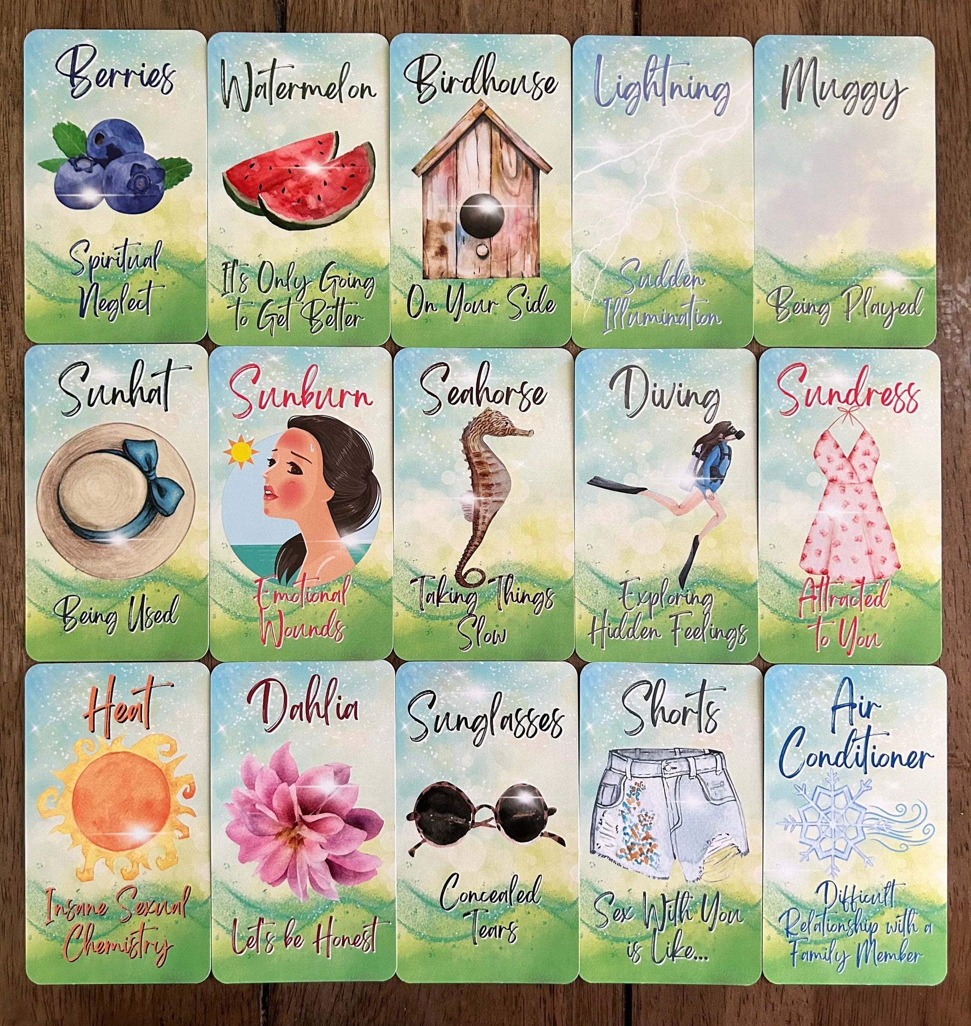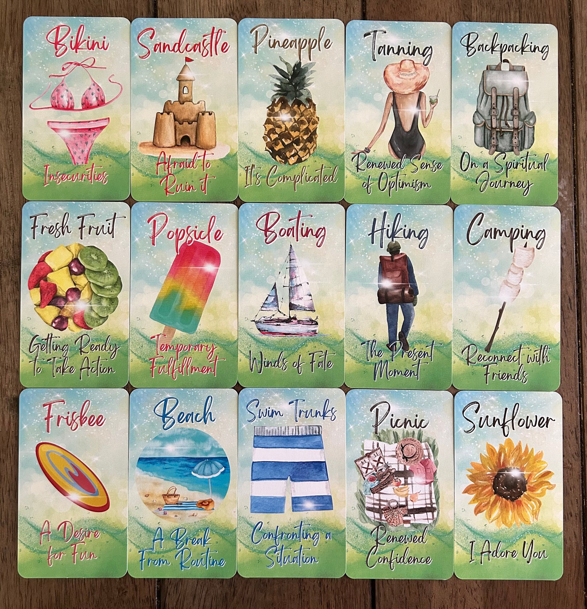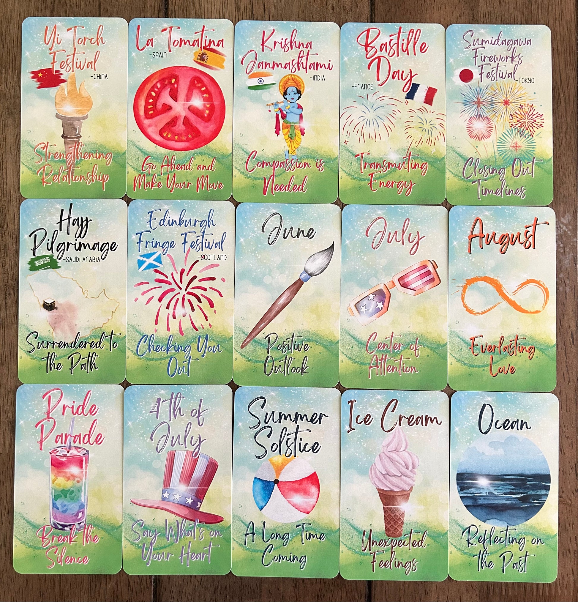 ☀️🌊 Capture the vibrant energy of summer with this colorful oracle deck 🏖️ Featuring seasonal themes, sunny vibes, and festive holidays 🌻🍦, it’s perfect for divination 🔮, spiritual guidance 🌙, and bringing warm, joyful energy to your tarot readings 🏝️🍉.