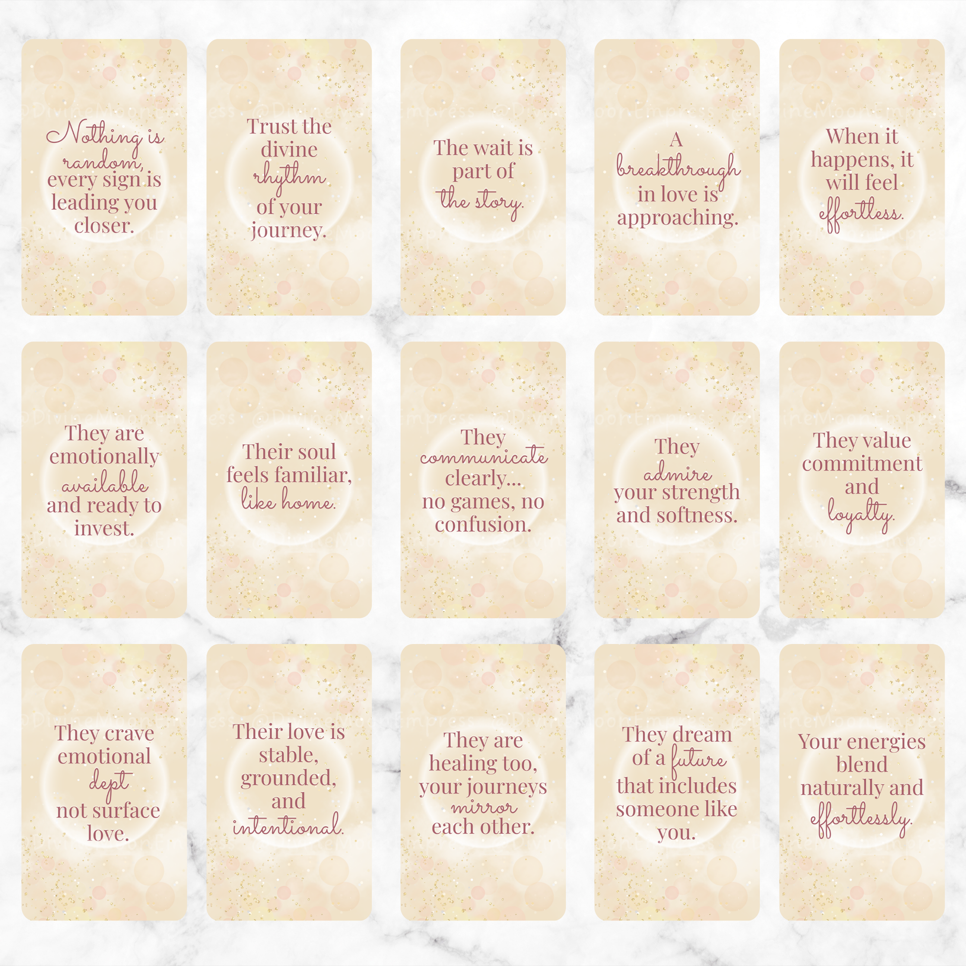 Let these cards guide you gently through the chapter before you meet the person your soul has been calling in.