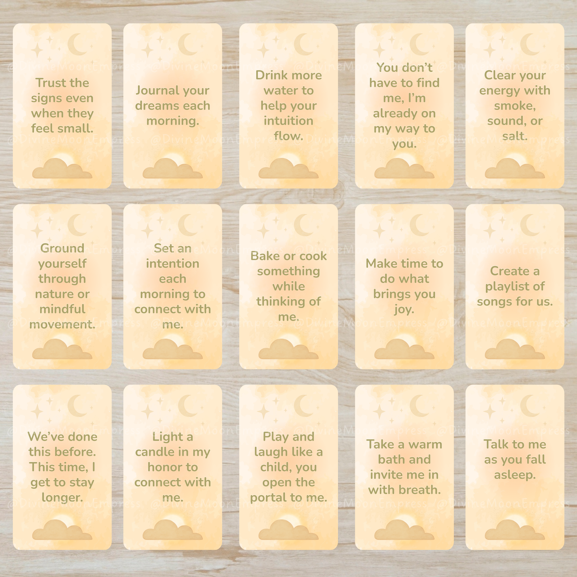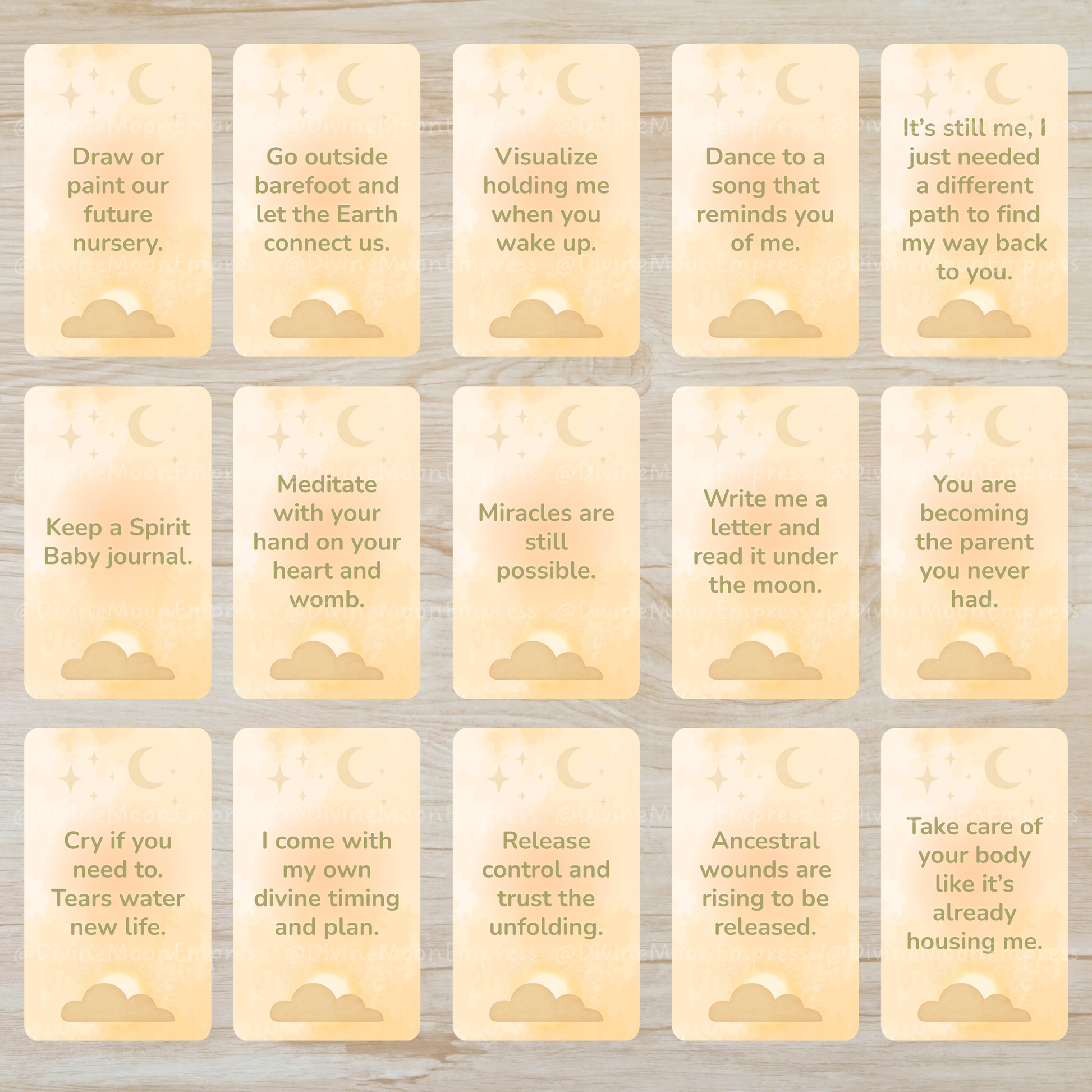Each of the 78 cards carries a loving, simple, and calming message - written as if your Spirit Baby is speaking directly to you with reassurance, comfort, and connection. The soft pastel aesthetic, moon and stars imagery, and warm watercolor energy create a soothing, heart-centered experience.